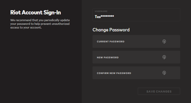 Speaking of passwords, this is where you can change yours! Your username and password are the components you’ll use to log into any Riot Game’s client.