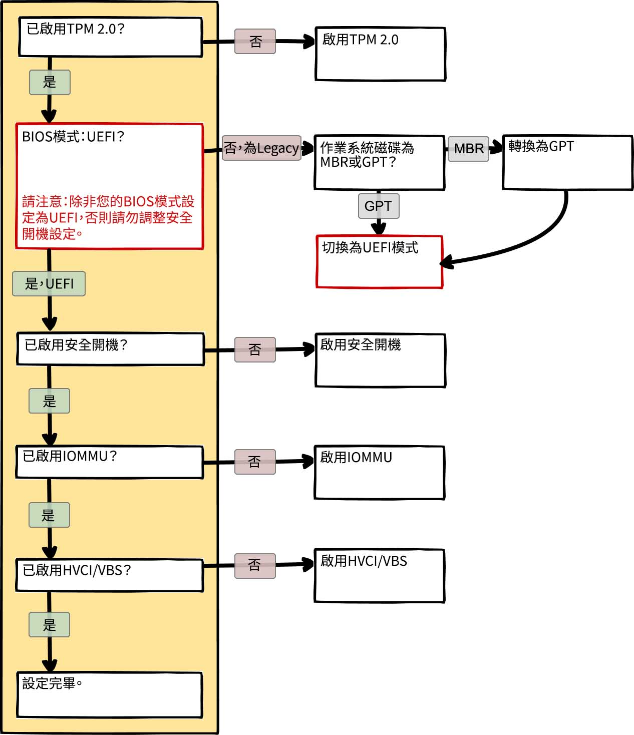 - 搜尋「如何在搭配(CPU型號)的(主機板廠牌)上啟用安全開機」的影片,以了解執行步驟,或是前往主機板製造商的網站,依照他們的說明執行。